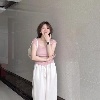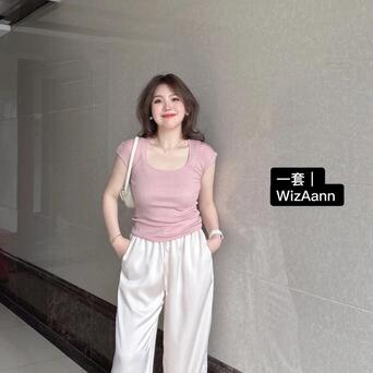 👚上身瞬间,温柔粉色轻抚肌肤,收腰设计巧妙藏肉,腰线立显,不再是梦!💃搭配米白色阔腿裤,宽松裤腿随风摇曳,遮肉又显腿长,走路都带风~💨